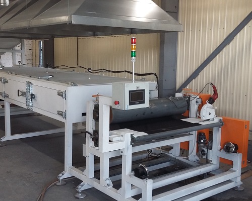Машины пропиточные применяются для изготовления композиционных материалов и состоят из узлов размотки рулонов с защитной плёнкой и стеклотканью, пропитки стеклоткани связующим и прокладке с двух сторон защитной плёнкой, последующей намотки готового продукта в рулоны с контролируемым натяжением.