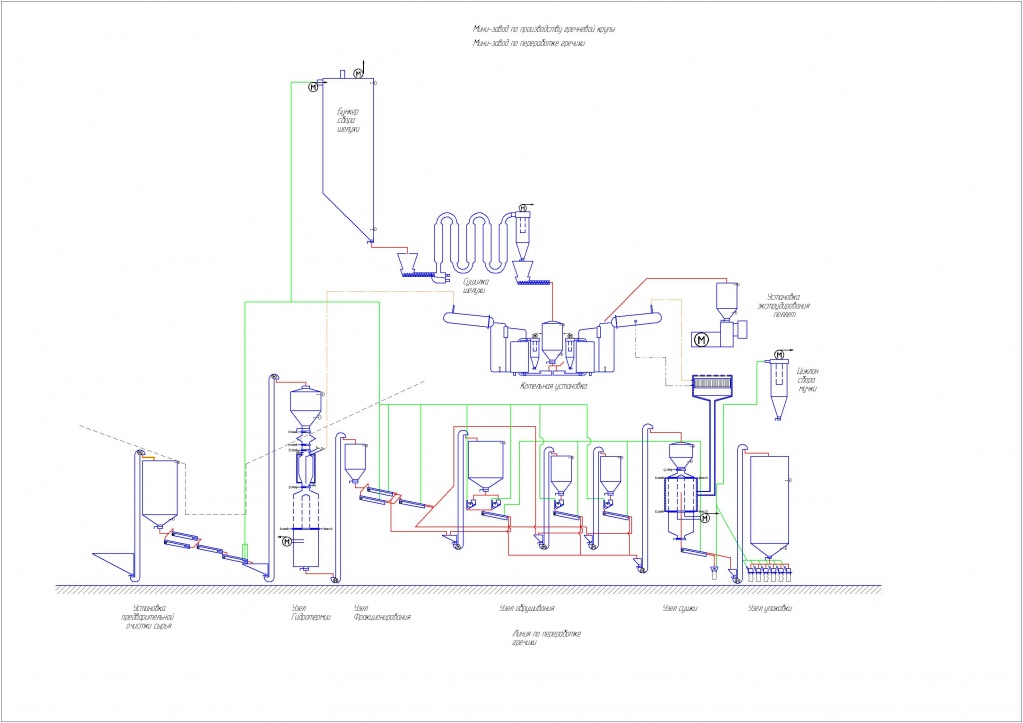 Линия для производства гречневой крупы состоит из нескольких отделений: