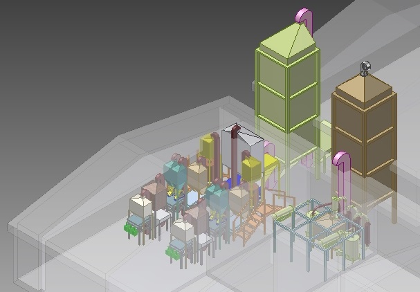 Модульное исполнение линии, позволяет в случае необходимости, повышать пропускную производительность линии за счёт установки дополнительных блоков из накопительных бункеров, норий, рушек и вибросит-столов.