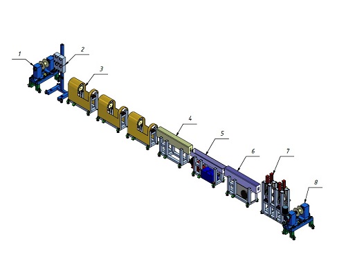 Линия для обмотки токо-проводящих шин слюдинитовыми и слюдопластовыми лентами с пропиткой компаундом и последующей сушкой.