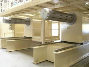 Накат Консольного типа, имеет одну подвижную бабку - установленную на линейных направляющих - зажимающей рулон при помощи пневмо-разжимного или иного вала (головки), что позволяет работать с рулонами разной длины, в диапазоне предусмотренном ТЗ заказчика. Н-р: 900-1200 мм.