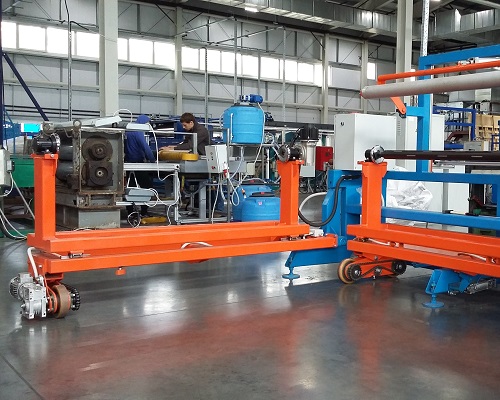 - Намоточный суппорт опорного типа: состоит из поворотной основной рамы с направляющими рельсами, подвижной рамы (каретки) с закрепленными на ней опорами типа Boschert,