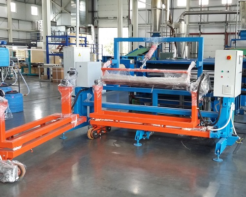 - При замене рулона, после обрезки полотна на гильотине, свободный конец полотна рулона поджимается прижимным валиком при помощи пневмо-цилиндра. Одновременно с прижатием валика, привод намотчика увеличивает скорость намотки до «не менее 5 м/мин.».