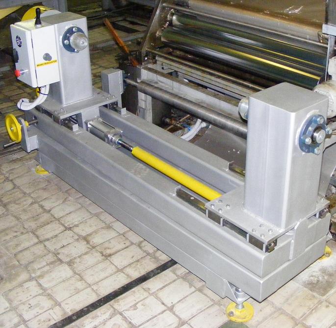 На "суппорт" раската устанавливается разматываемый рулон, и зажимается подвижной бабкой пневмо-цилиндром. Усилие натяжения полотна задается оператором при помощи регулятора давления воздуха подаваемого на пневмо-тормоз.Опция: