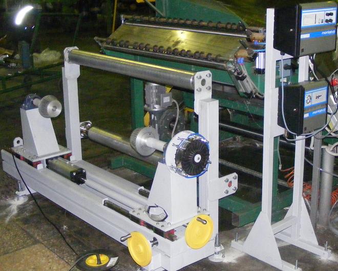 На "суппорт" раската устанавливается разматываемый рулон, и зажимается подвижной бабкой пневмо-цилиндром. Усилие натяжения полотна задается оператором при помощи регулятора давления воздуха подаваемого на пневмо-тормоз.Система контроля натяжения: