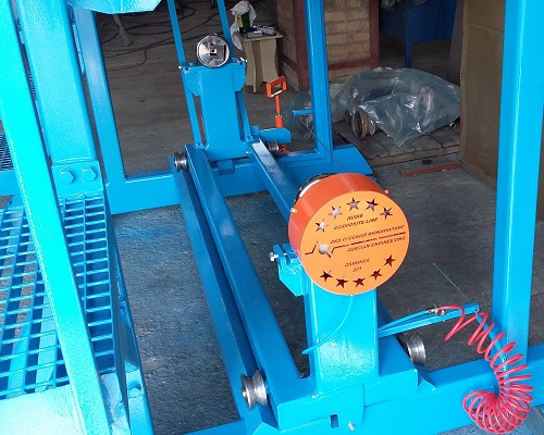 На опоры "суппорта" раската устанавливается вал с разматываемым рулоном, и зажимается. Усилие натяжения полотна задается оператором при помощи регулятора давления воздуха подаваемого на пневмо-тормоз.Опция: